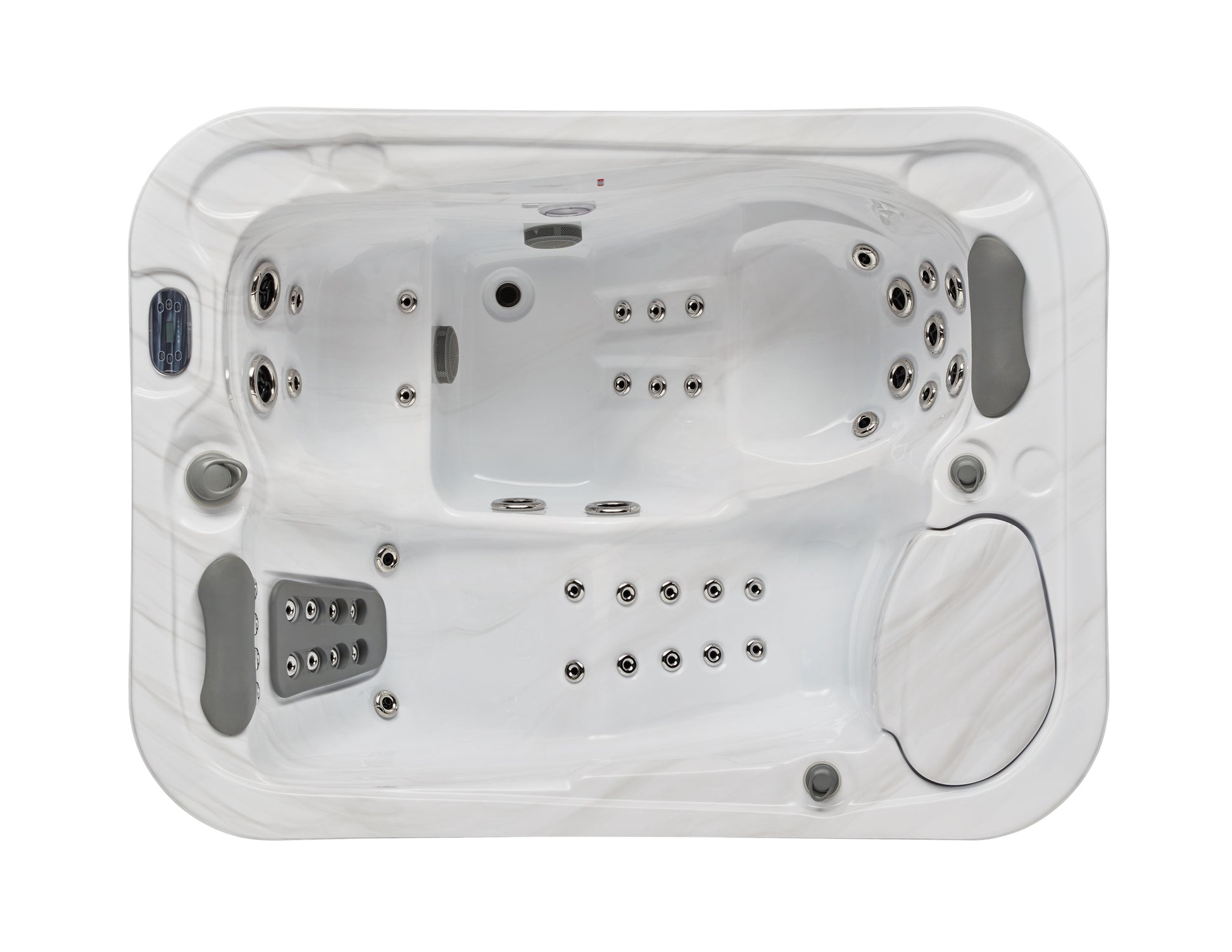 The Casey 3 Person luxury home spa features 2 ultra comfortable lounge seats and 47 total jets packing a complete hydromassage experience into a compact design. The Casey home spa is designed to provide all the features of larger luxury spas in a smaller footprint. It is 32 inches deep providing a deep soak and plenty of powerful targeted hydro-massage jets. The multi-color underwater LED lighting system adds a relaxing ambience while the 2 powerful multi-speed pumps provide ample power for the multiple jets in this rectangular home spa. The filter pump ensures the water continues to circulate periodically while the spa is not in use keeping the water clean and sanitary. Full foam insulation improves energy efficiency and reduces operating costs in colder climates.