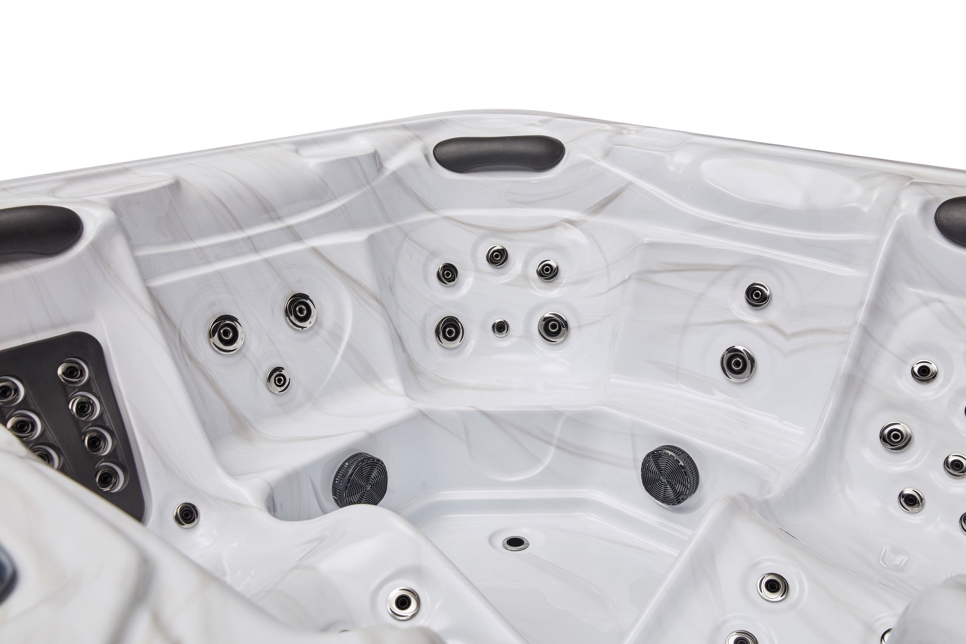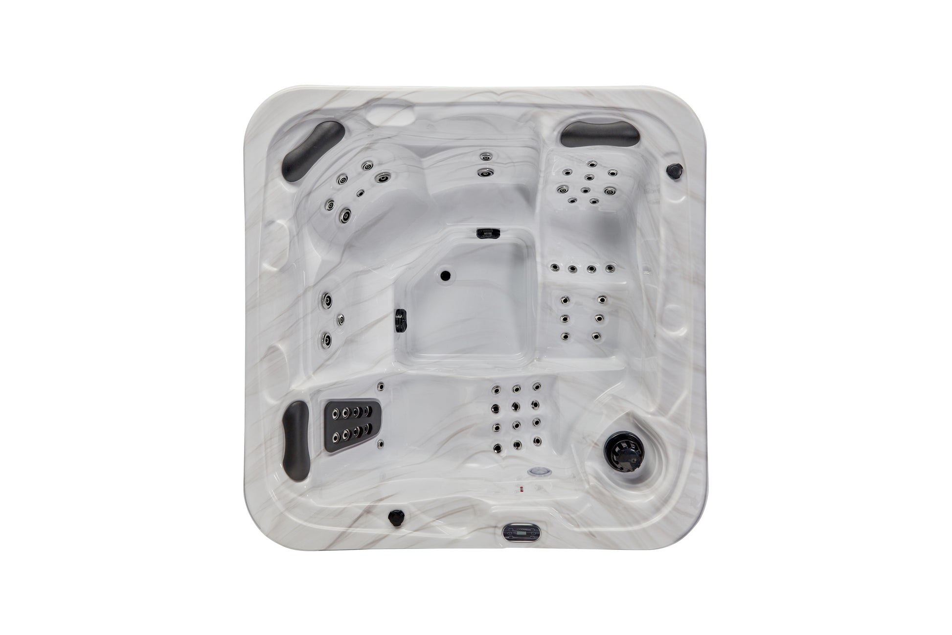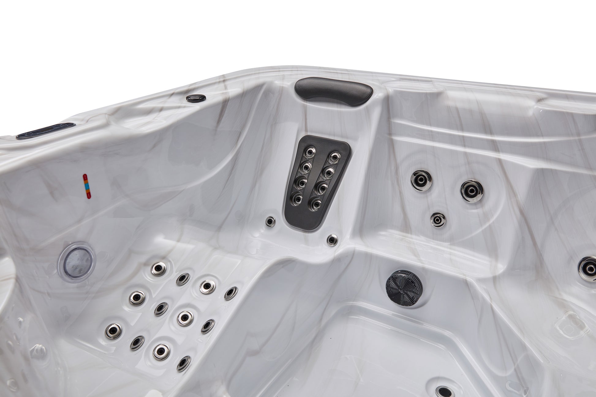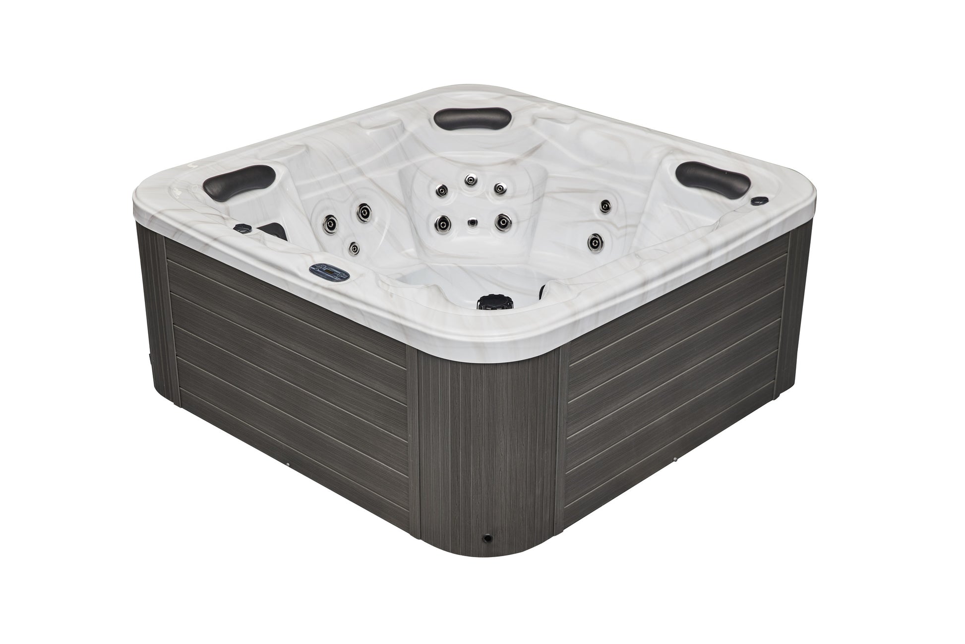 The Estes 5-Person home spa with cloud grey interior features two lounge seating options and three spacious bucket seats. Includes 52 powerful water jets providing back, leg and foot massage. The multiple seating options of the Estes allows you to relax and enjoy the spa with friends and family without feeling crowded. The integrated cushioned headrests and LED mood lighting helps you relax and de-stress the day away. This spa includes a deluxe UV rated spa cover.