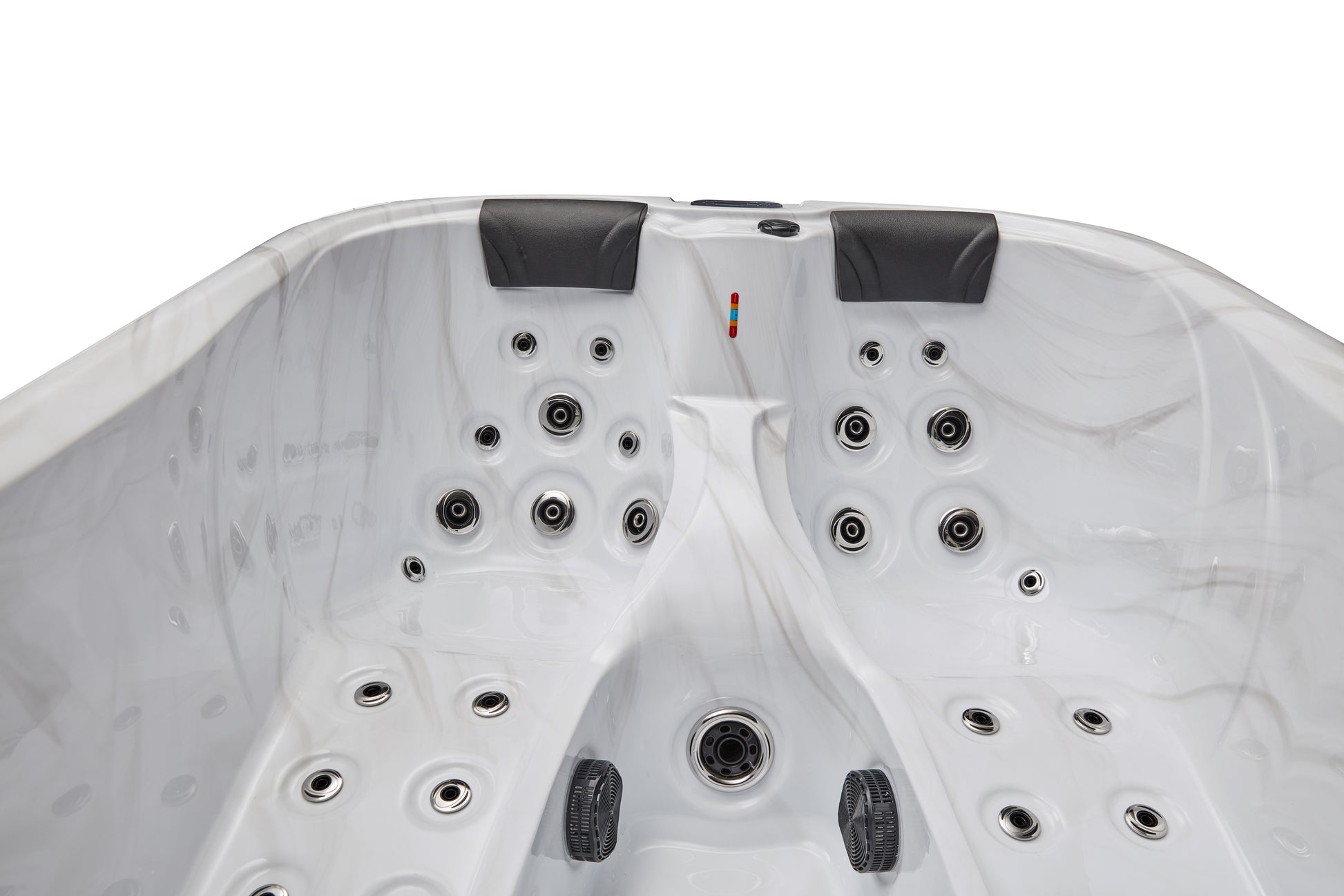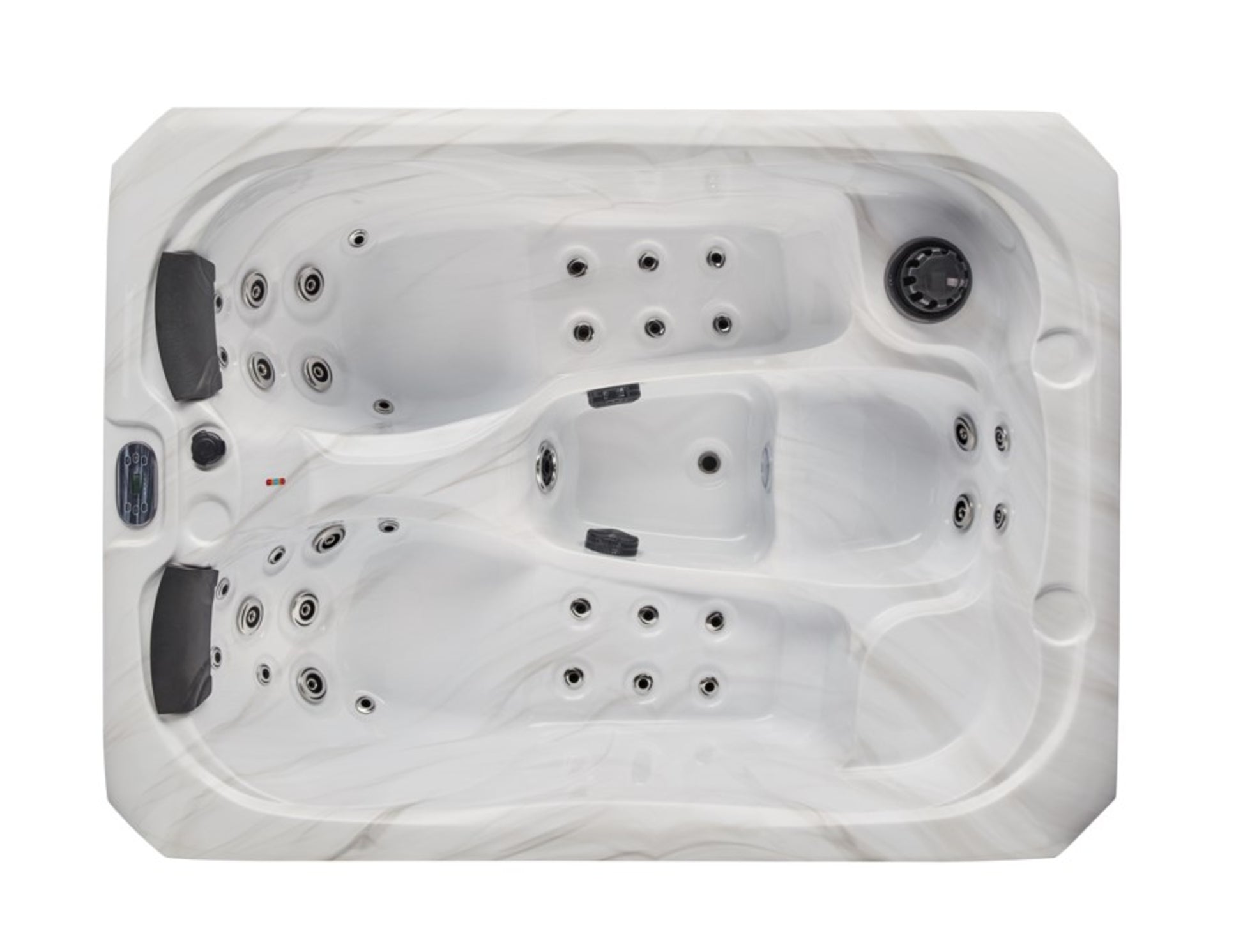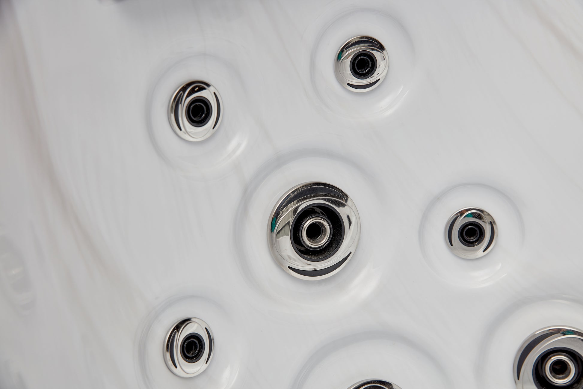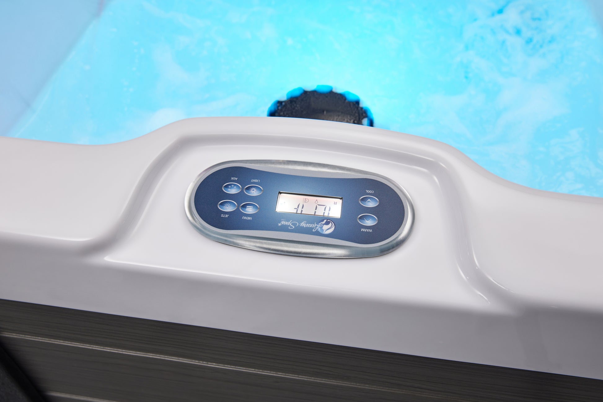 The Largo 3-person home spa with cloud grey interior offers 2 side by side loungers and a bonus bucket seat for optimal comfort. This spacious home spa has 34 adjustable massage jets offering a complete hydrotherapy massage in a compact design. The extended lounge seating area provides plenty of room to stretch out and relax while the multi-color underwater LED lighting system offers a soothing ambience. The strategically positioned back, foot and leg massage jets provide a complete mid-low body massage. The multi speed pump provides ample power for the adjustable jets in high mode while low mode acts as a filtration pump for improved water clarity. Includes a UV rated insulated spa cover and premium steps.($495 value!).